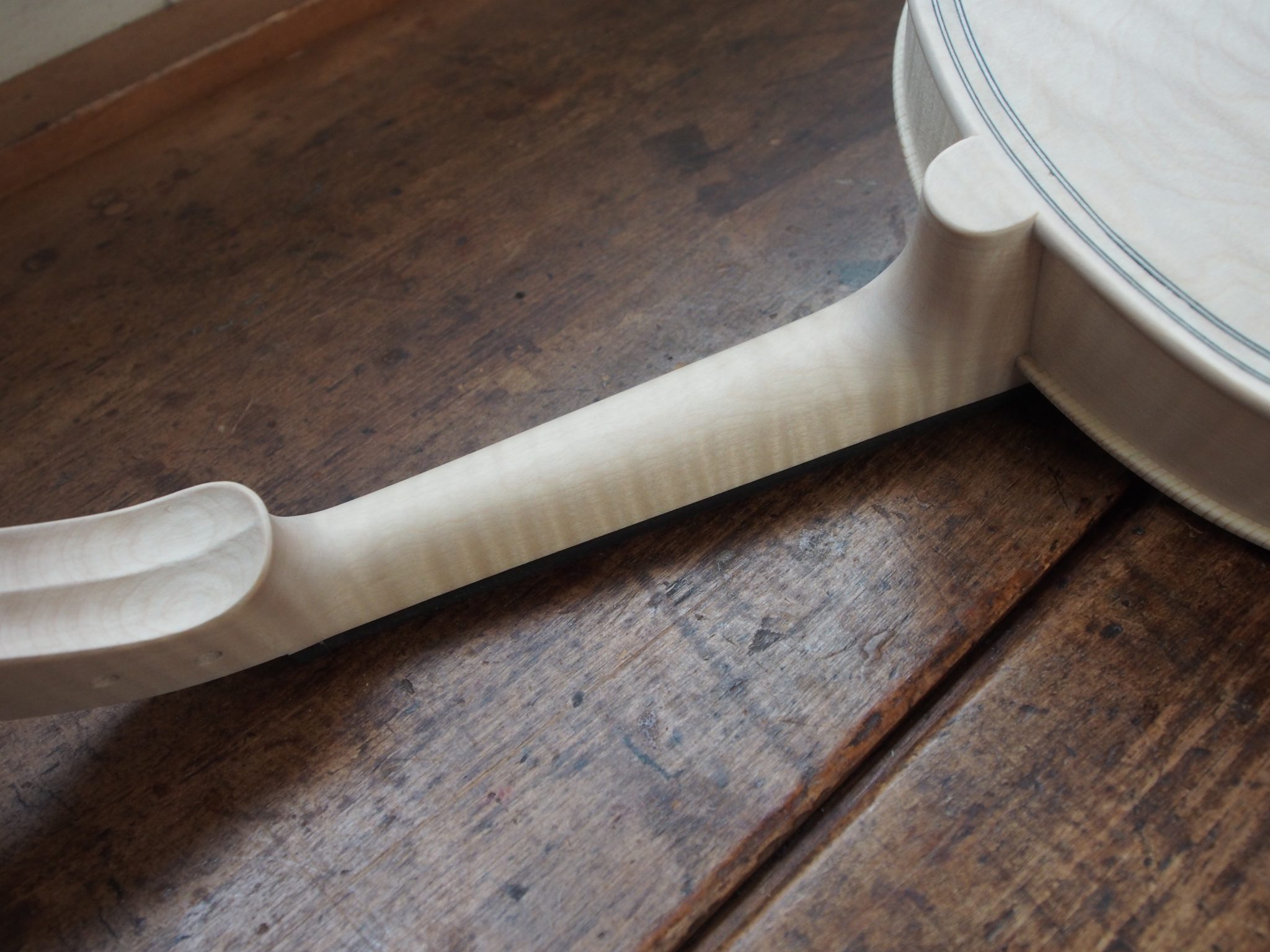 The body of the viola is finished, and I’ve finalised the edgework prior to fitting the neck. With the neck in the instrument, I spend some time making a neat and comfortable shape which will work well for the player.