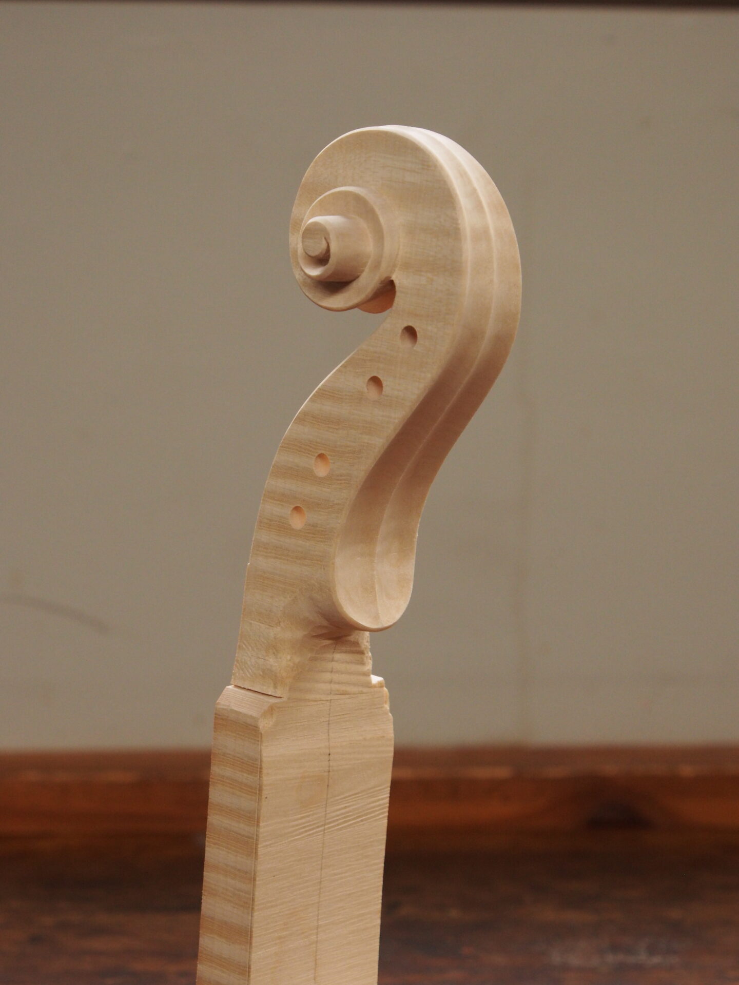 While the glue dries on all the different stages of making the ribs, I make the scroll. The Stradivari scrolls have a simple grace and elegance that I try hard to capture.