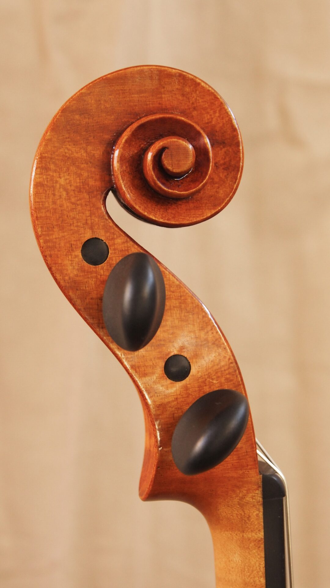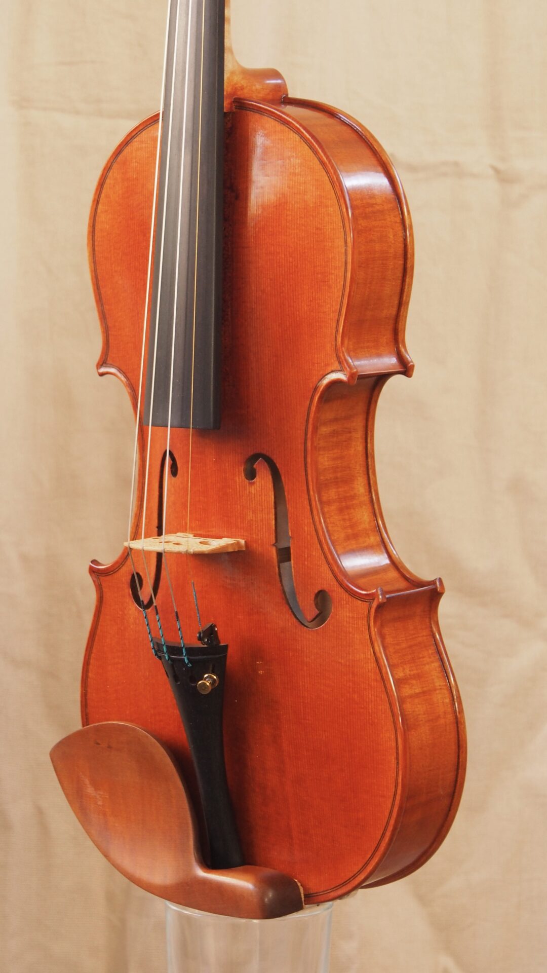 Abi wanted a slightly undersized violin so this model fits the bill. Many of the Guarneri del Gesù violins are on the smaller side, with a shorter string length, so they work perfectly for players who like a super-manageable instrument. I’ve made this model several times and there is no loss of sound quality with the trim dimensions.